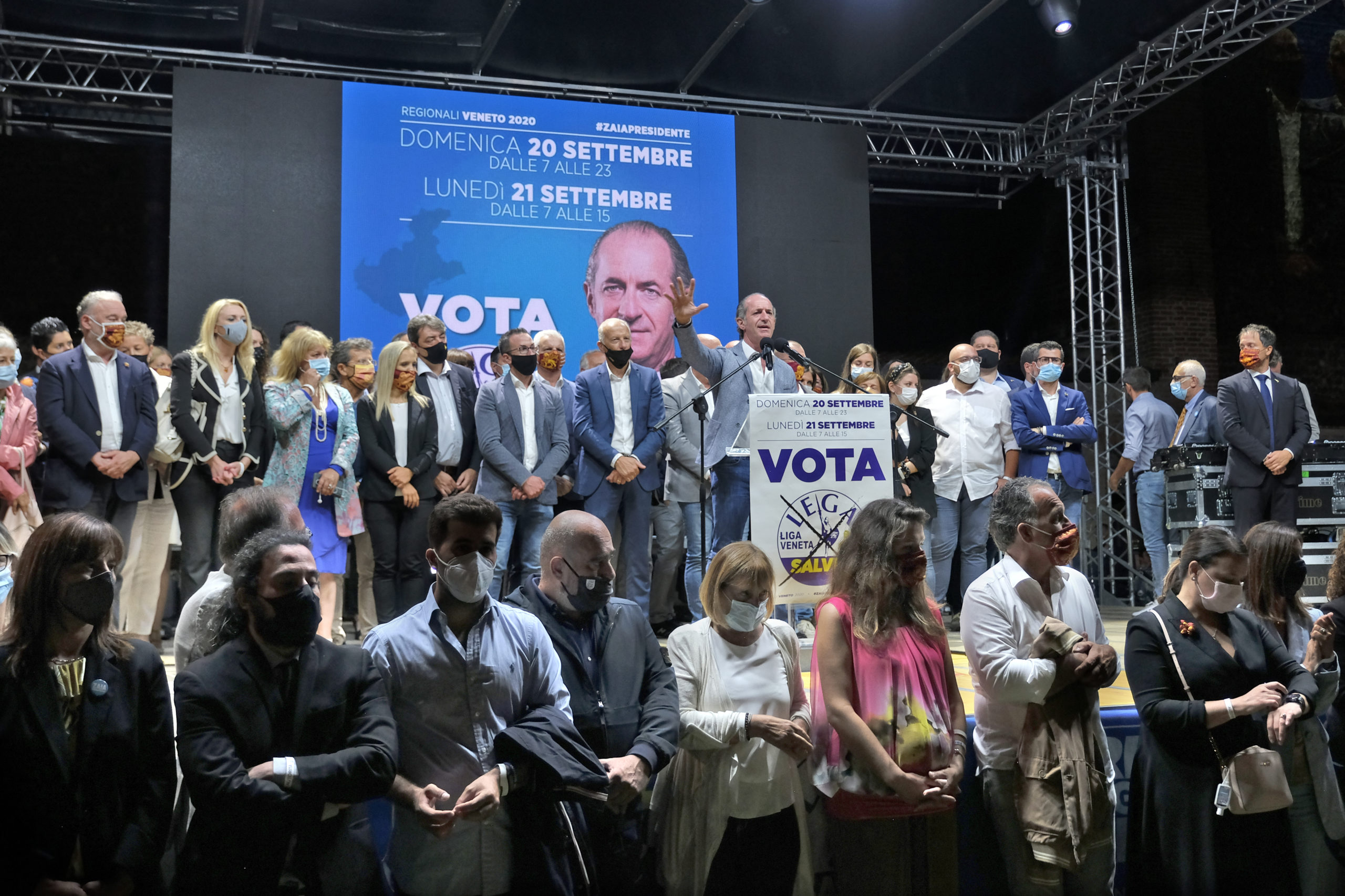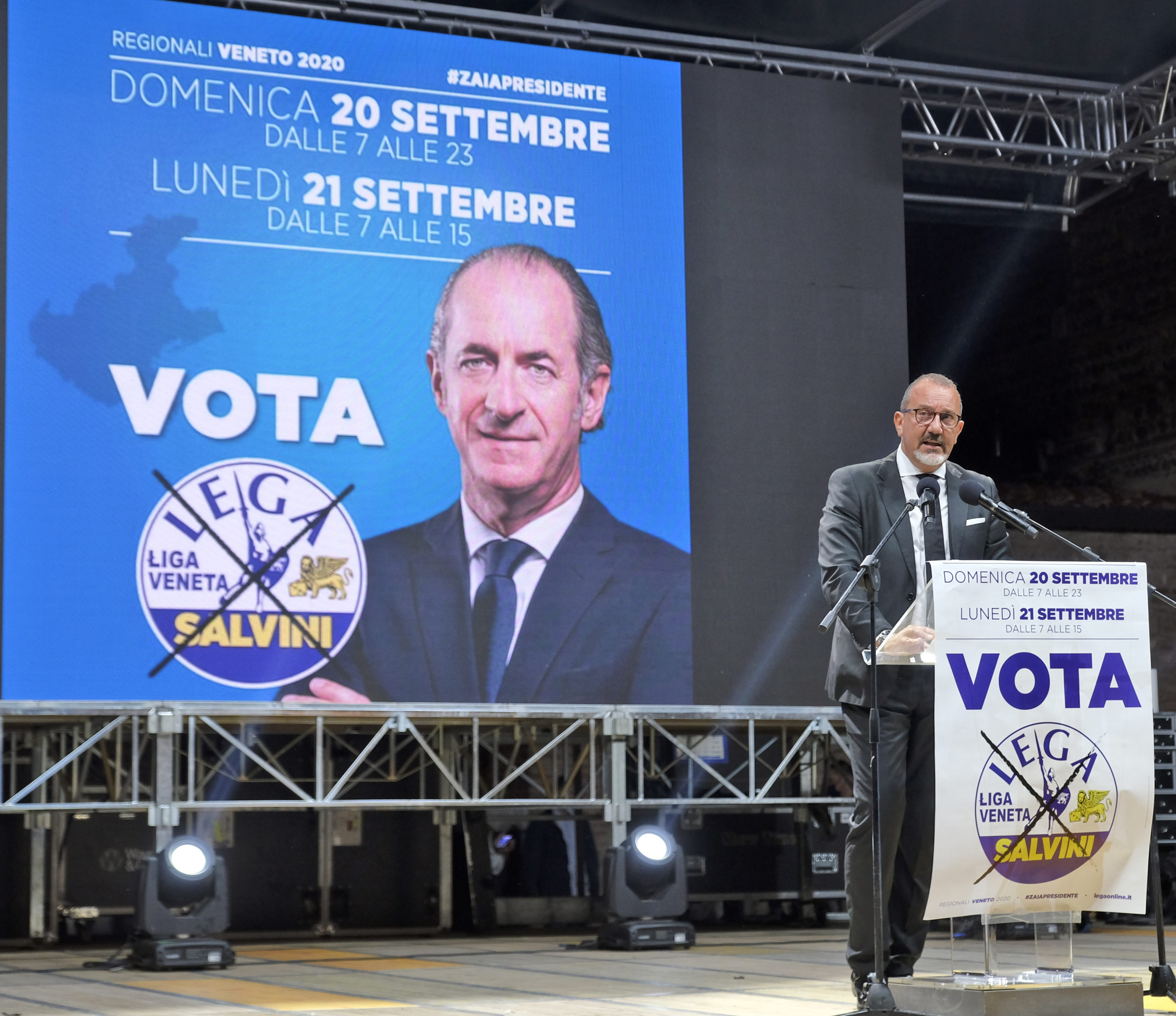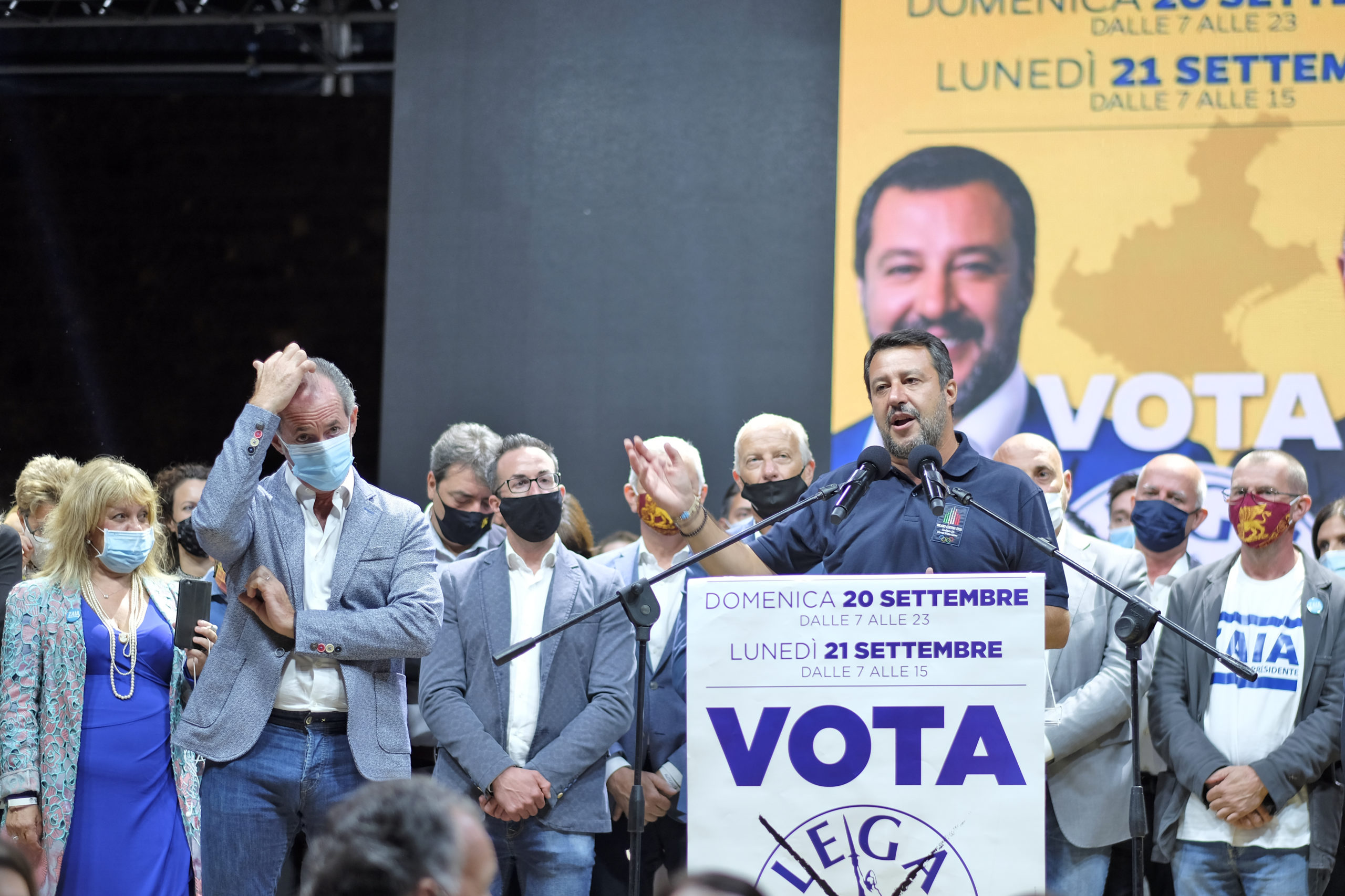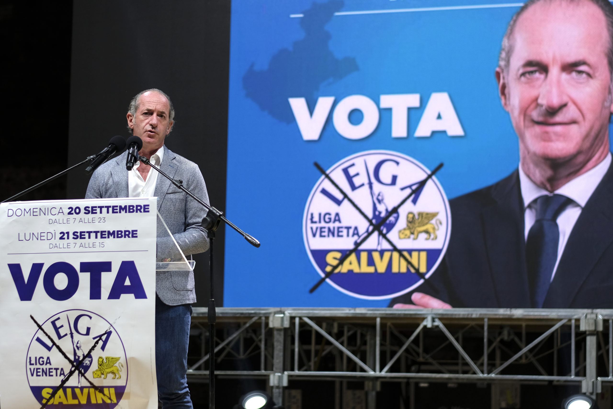 Dall’ospedale di Padova, dov’è ricoverato da alcuni giorni a causa del Coronavirus, Arturo Lorenzoni, candidato governatore per il centrosinistra, ha sferrato un duro attacco al presidente Luca Zaia: “Racconta un Veneto che non c’è. Mi piange il cuore dirlo, ma non è l’Eldorado. Il Veneto è imbalsamato”, ha affondato Lorenzoni. “Solo un dato sulla sanità: dal 2000 in poi i posti pubblici sono scesi del 16%. Lo definite un modello?”. Lorenzoni ha anche fatto sapere che gli esami a cui è stato sottoposto sono “assicuranti, ma”, ha tenuto a sottolineare, “sono qui per la stanchezza, per lo stress di questa situazione”. Ieri sera, al castello di Villafranca, Matteo Salvini e Zaia hanno chiamato a raccolta i candidati e i militanti. Sul prato, distanziate, c’erano circa 1.500 persone. La grande attesa è per il “derby” tra la lista della Lega e quella del governatore. Se quest’ultima dovesse staccare di molto quella del partito potrebbero sorgere riflessioni interne al Carroccio. Se ne parla da settimane. I protagonisti però, comprensibilmente, hanno voluto smentire l’ipotesi ancora una volta. Salvini ha detto che i problemi sono altri: “e Lega e Lista Zaia prendono da sole il 60% e Pd e Cinque Stelle, che sono insieme al governo, complessivamente sono al 20, i problemi li hanno loro, non io”. Lo schieramento di centrodestra, stando agli ultimi sondaggi pubblicati, graviterebbe attorno al 70%. Zaia ha ribadito di non avere ambizioni romane: “Lo dice la mia storia. Voglio e devo seguire il Veneto. Ci sono tanti progetti, ma soprattutto la partita dell’autonomia. Noi siamo pronti da un sacco di tempo: è il governo che non si decide a chiamarci per la firma” Giandomenico Allegri, candidato consigliere per il Pd, è partito all’attacco: “ll nuovo book elettorale di Zaia, intitolato ‘l’impegno continua’ e arrivato in questi giorni nelle case, sembra un depliant turistico. Il problema”, ha continuato Allegri”, è che Zaia non è un promoter, ma il presidente di una Regione che al territorio veronese ha promesso opere pu