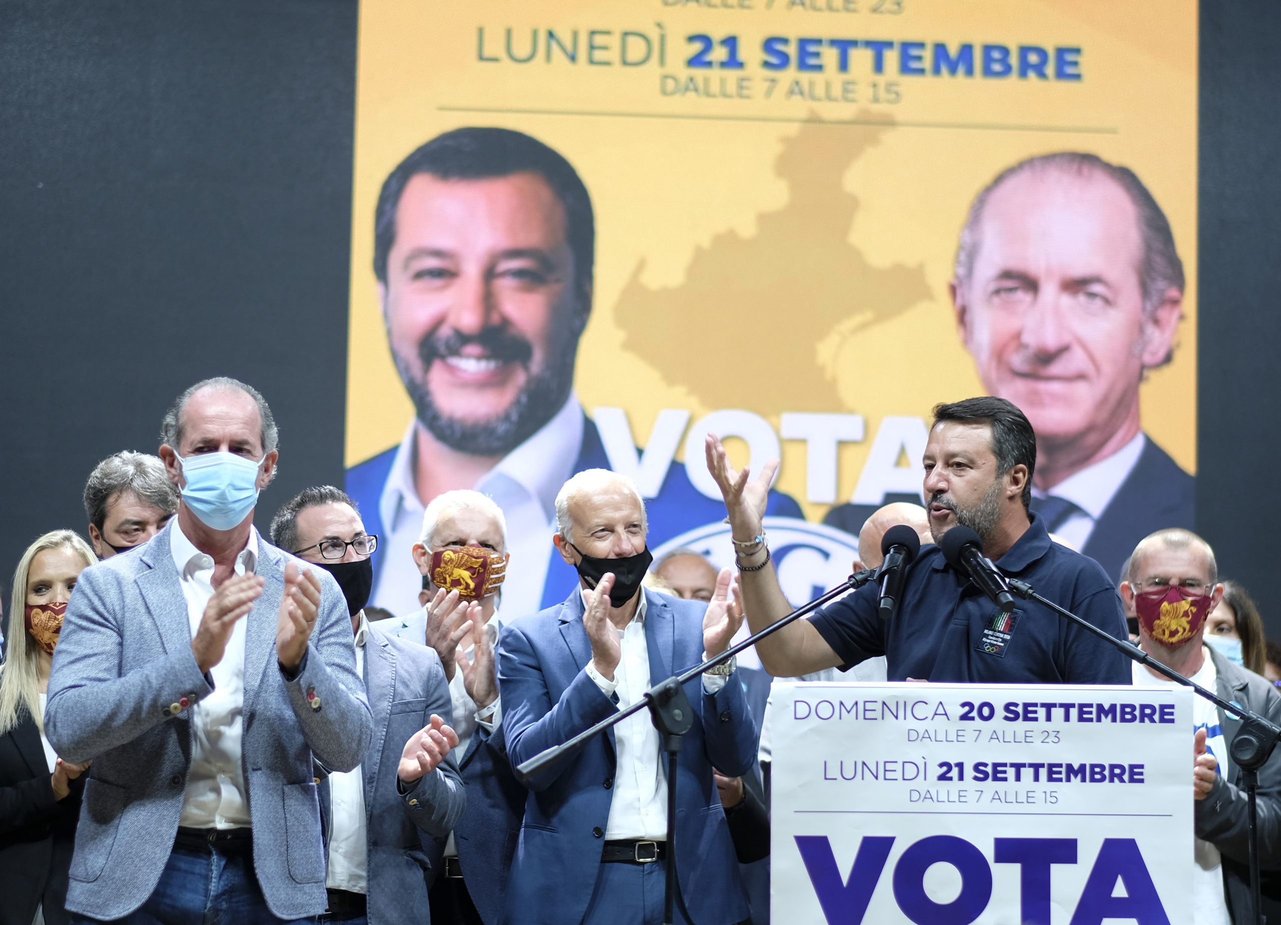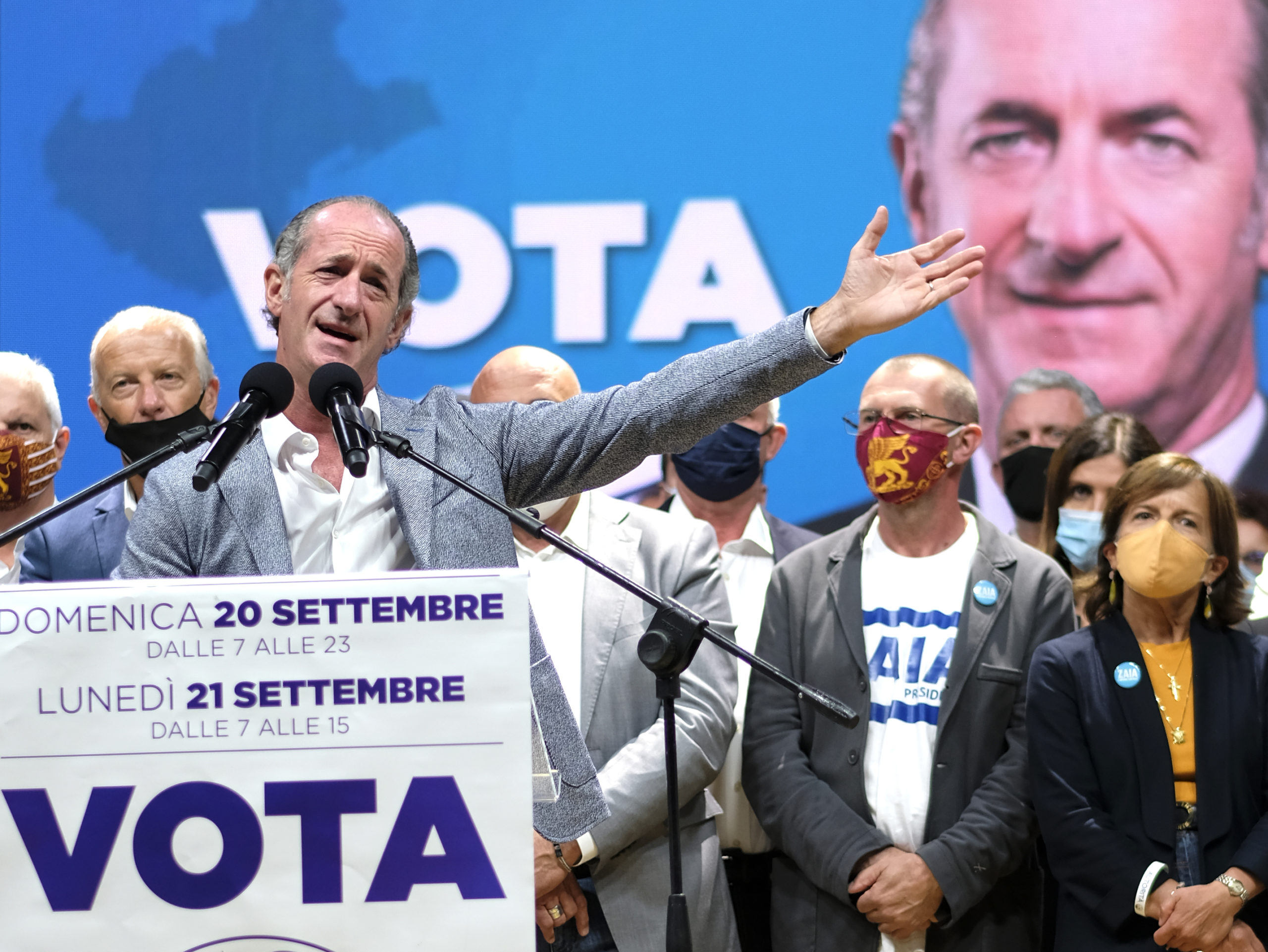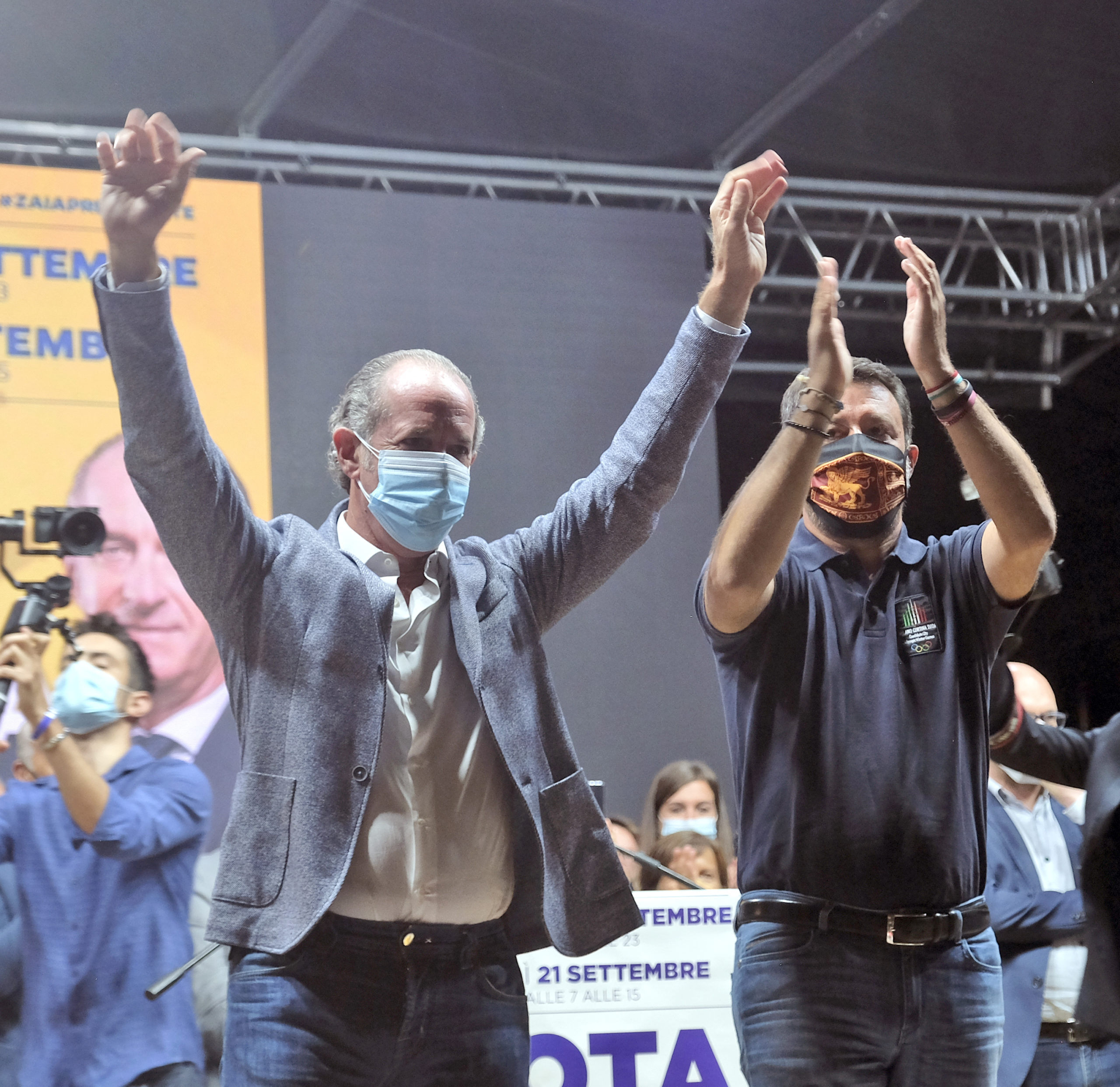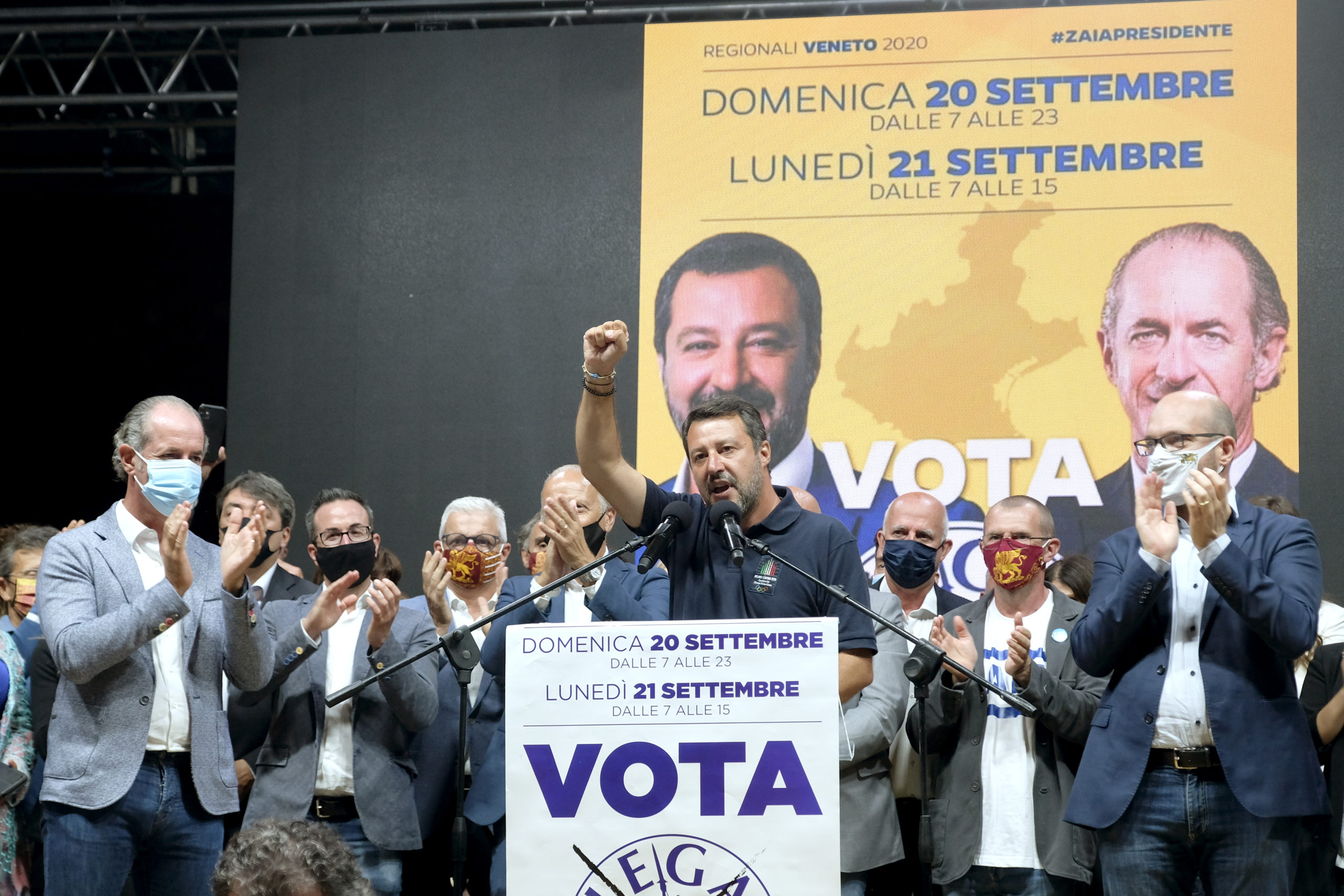 Dall’ospedale di Padova, dov’è ricoverato da alcuni giorni a causa del Coronavirus, Arturo Lorenzoni, candidato governatore per il centrosinistra, ha sferrato un duro attacco al presidente Luca Zaia: “Racconta un Veneto che non c’è. Mi piange il cuore dirlo, ma non è l’Eldorado. Il Veneto è imbalsamato”, ha affondato Lorenzoni. “Solo un dato sulla sanità: dal 2000 in poi i posti pubblici sono scesi del 16%. Lo definite un modello?”. Lorenzoni ha anche fatto sapere che gli esami a cui è stato sottoposto sono “assicuranti, ma”, ha tenuto a sottolineare, “sono qui per la stanchezza, per lo stress di questa situazione”. Ieri sera, al castello di Villafranca, Matteo Salvini e Zaia hanno chiamato a raccolta i candidati e i militanti. Sul prato, distanziate, c’erano circa 1.500 persone. La grande attesa è per il “derby” tra la lista della Lega e quella del governatore. Se quest’ultima dovesse staccare di molto quella del partito potrebbero sorgere riflessioni interne al Carroccio. Se ne parla da settimane. I protagonisti però, comprensibilmente, hanno voluto smentire l’ipotesi ancora una volta. Salvini ha detto che i problemi sono altri: “e Lega e Lista Zaia prendono da sole il 60% e Pd e Cinque Stelle, che sono insieme al governo, complessivamente sono al 20, i problemi li hanno loro, non io”. Lo schieramento di centrodestra, stando agli ultimi sondaggi pubblicati, graviterebbe attorno al 70%. Zaia ha ribadito di non avere ambizioni romane: “Lo dice la mia storia. Voglio e devo seguire il Veneto. Ci sono tanti progetti, ma soprattutto la partita dell’autonomia. Noi siamo pronti da un sacco di tempo: è il governo che non si decide a chiamarci per la firma” Giandomenico Allegri, candidato consigliere per il Pd, è partito all’attacco: “ll nuovo book elettorale di Zaia, intitolato ‘l’impegno continua’ e arrivato in questi giorni nelle case, sembra un depliant turistico. Il problema”, ha continuato Allegri”, è che Zaia non è un promoter, ma il presidente di una Regione che al territorio veronese ha promesso opere pu